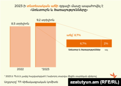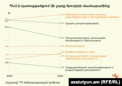 Այս ճյուղերը միասին Հայաստանի ՀՆԱ-ի շուրջ 60 տոկոսն են կազմում։ Գրեթե երկու տարի շարունակ իշխանությունները բարձր ցուցանիշները ձեռքբերում են համարում, մասնագետներն էլ շեշտում են՝ ռուս- ուկրաինական պատերազմի ազդեցությունն է։ Տնտեսության կառուցվածքում արդյունաբերության մասնաբաժնի նվազումը մտահոգիչ է, ասում է Արմինե Պետրոսյանը։